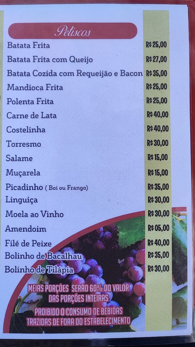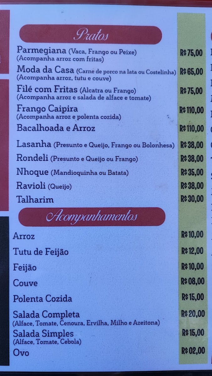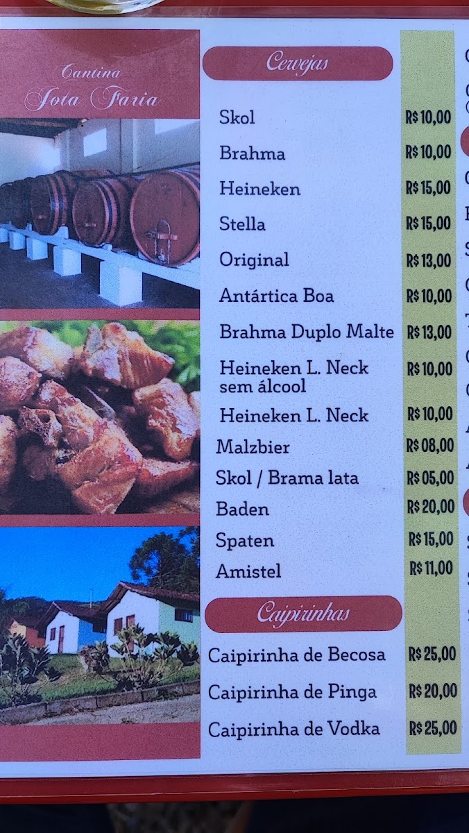 Cantina Jota Faria offers a warm and inviting menu that highlights the rich flavors of Brazilian cuisine with a rustic charm. Among the standout dishes, Lombo Na Lata stands out as a hearty and flavorful choice, offering tender pork cooked to perfection in a traditional style. For those seeking a lighter start to the day, the Café da Manhã provides a delightful breakfast spread, perfect for fueling up for the day ahead. The wine selection is robust, with the Vinho da Casa offering a smooth, house-specialty option that complements the meal beautifully. The restaurant also features comforting options like the crispy and golden Tilápia A Parmegiana, a unique take on the classic parmegiana with tilapia fillets. For a taste of homestyle comfort, the Polenta Cozida is a must-try, offering a delicious, savory accompaniment. Meat lovers will enjoy the Parmegiana de Carne Vermelha, a rich and indulgent choice with tender beef, while the Pancera Com Mandioca presents a satisfying blend of pork and cassava. The drinks menu features local favorites, including Vinho Cerveja E Cachaça, which offers a refreshing and diverse selection of beverages to complement any dish. With its authentic flavors and hearty options, Cantina Jota Faria provides a true taste of Brazil.